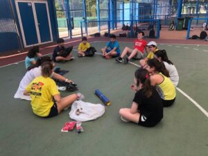 Para comenzar el día, han disfrutado de la clase de tenis enormemente. Nuestr@s chic@s están demostrando un gran compromiso por luchar para lograr para su casa que, como ayer dijimos, son las casas de Hogwarts. En esta clase de tenis, han realizado un calentamiento, un juego de calentamiento para poner a punto su raqueta, un circuito de 4 estaciones donde han tenido que trabajar duramente su precisión para obtener puntos para su equipo. ¡Se lo han pasado en grande!